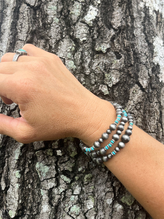 Blue & Gold Mother Of Pearl Clover Bracelet